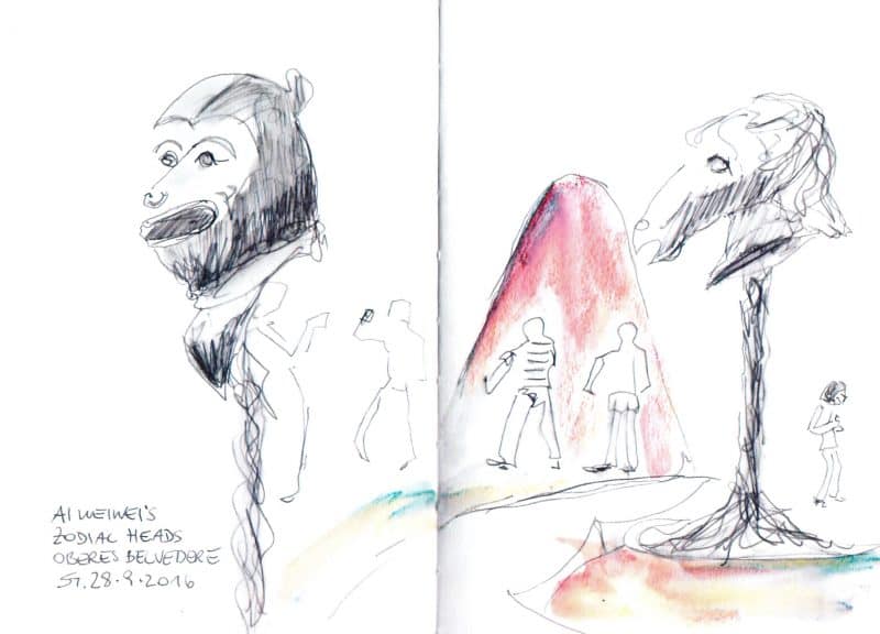 Letzte Woche trafen wir uns, begleitet von den letzten Sonnenstrahlen, im oberen Belvedere. Ein paar der Zwölf Skulpturen von Ai WeiWei haben wir in unseren Skizzenbücher festgehalten.