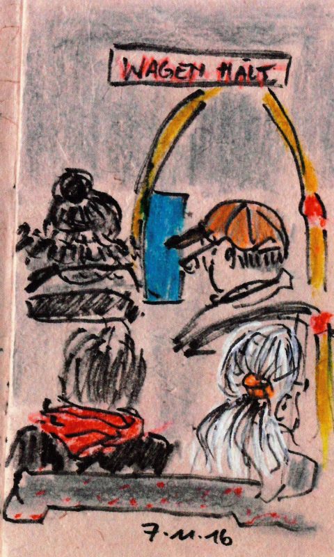 Im Busvon Gerlinde4. Dezember 20169. Januar 2019 Hier sind wieder einige Zeichnungen die auf meinem Arbeitsweg in der Früh im wackeligen Bus im November entstanden sind. Gerlindewww.gerz.at