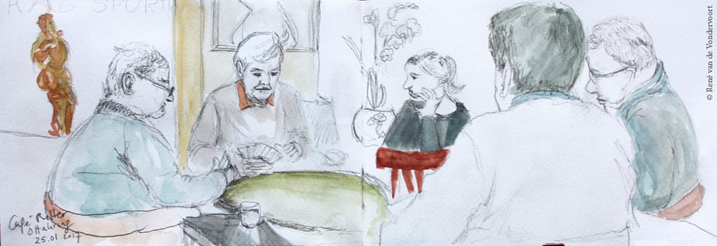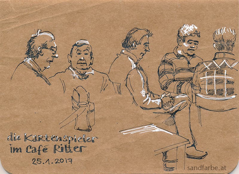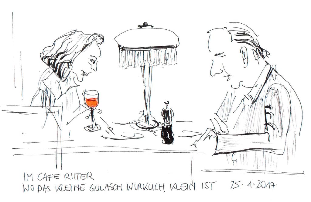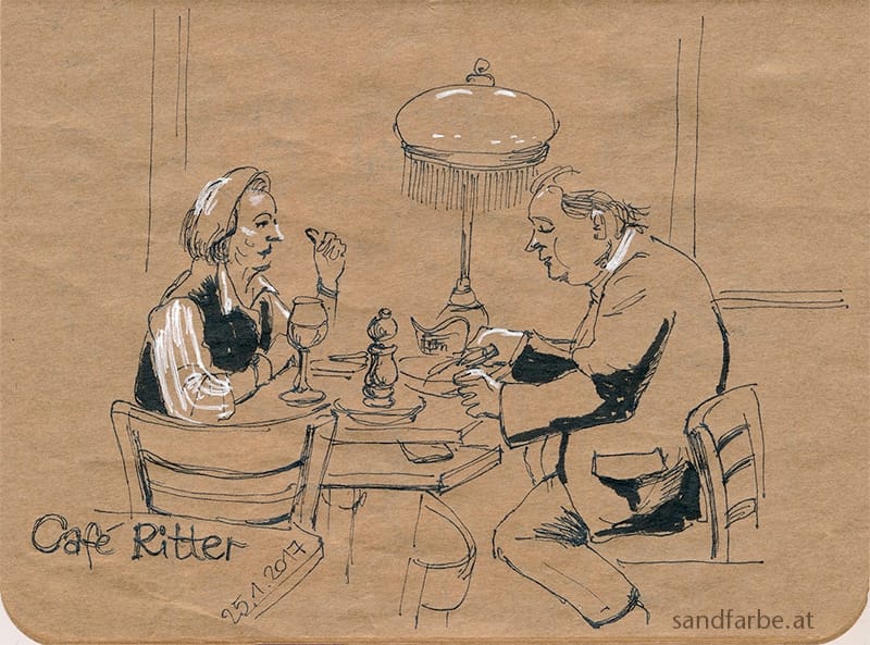 Mittwoch abend haben wir einen kleinen Tisch im neu eröffneten Café Ritter ergattert, gleich neben den Kartenspielern. Alles in allem herrschte eine angenehme Atmosphäre im Jugendstil-Café, auch wenn das gute Essen in sehr kleinen Portionen ausfiel.