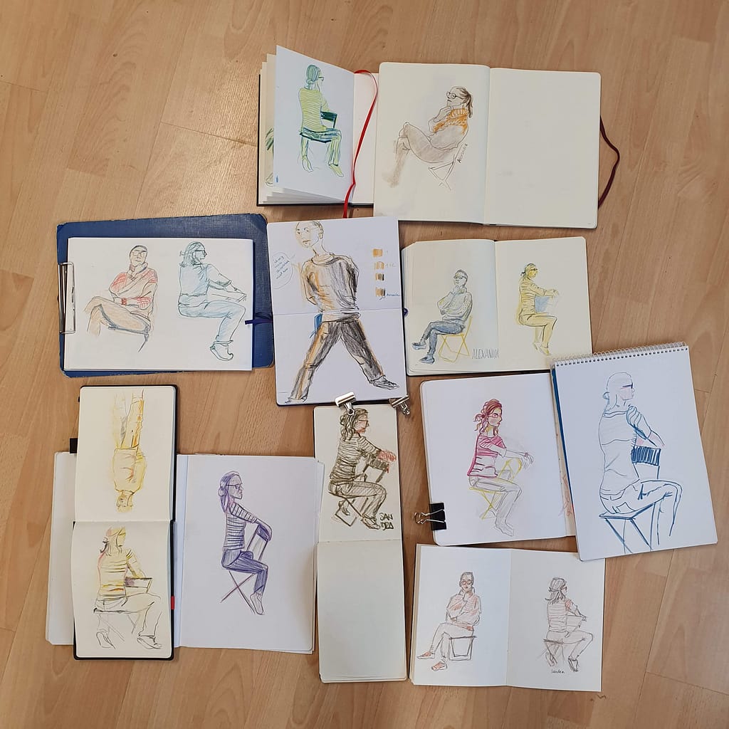 Und da das Skizzenbuch ein sehr persönliches Medium ist, werden wir einen extra Augenmerk darauf legen beim Zeichnen nicht einfach Menschen abzubilden, sondern vielmehr unsere Gefühle, die sie in uns hervorrufen berücksichtigen. So werden wir neben Erkenntnissen zum Thema „Mensch“ auch unsere zeichnerische Handschrift und Sehweise weiterentwickeln.
