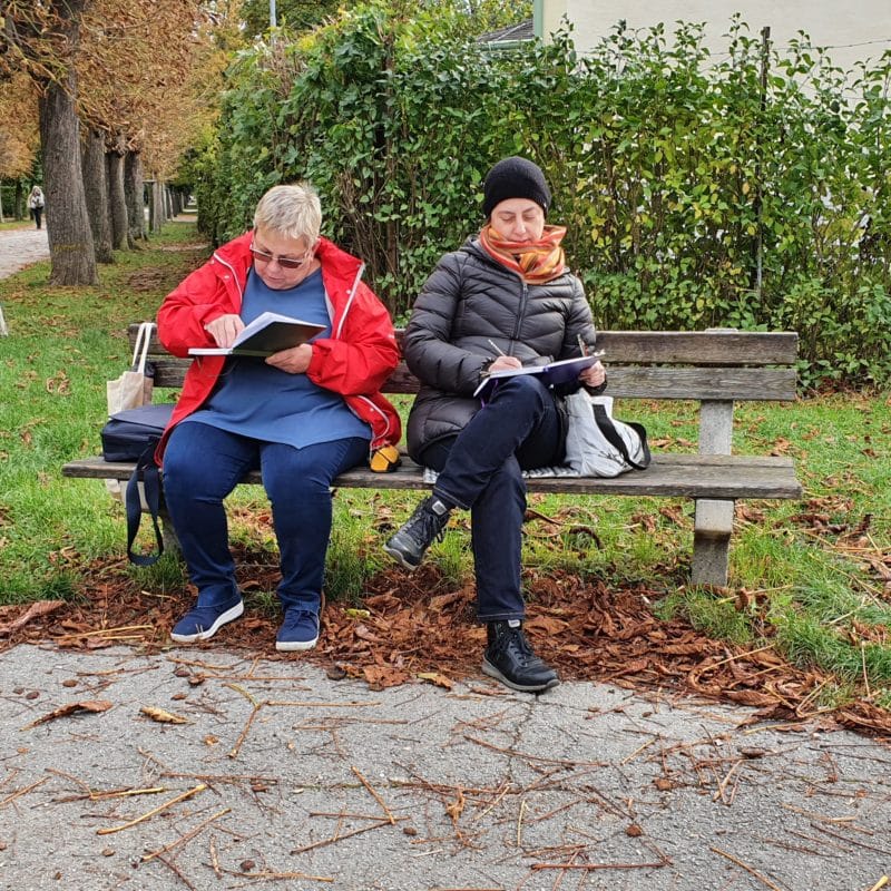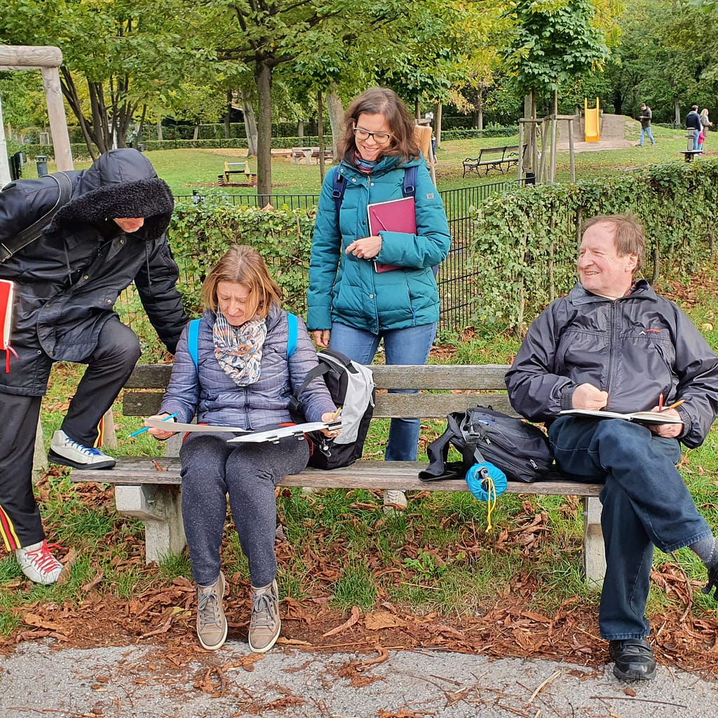 Unter widrigsten Bedingungen, getreu dem echten Urban Sketchers Spirit trotzten wir einer Pandemie und sketchten bei eisigem Wetter. Und wir versuchten in den zwei Tagen, die Grundlagen des Portraitierens mit Buntstiften zu meistern und das Gelernte auch gleich in einem Feldversuch umzusetzen!