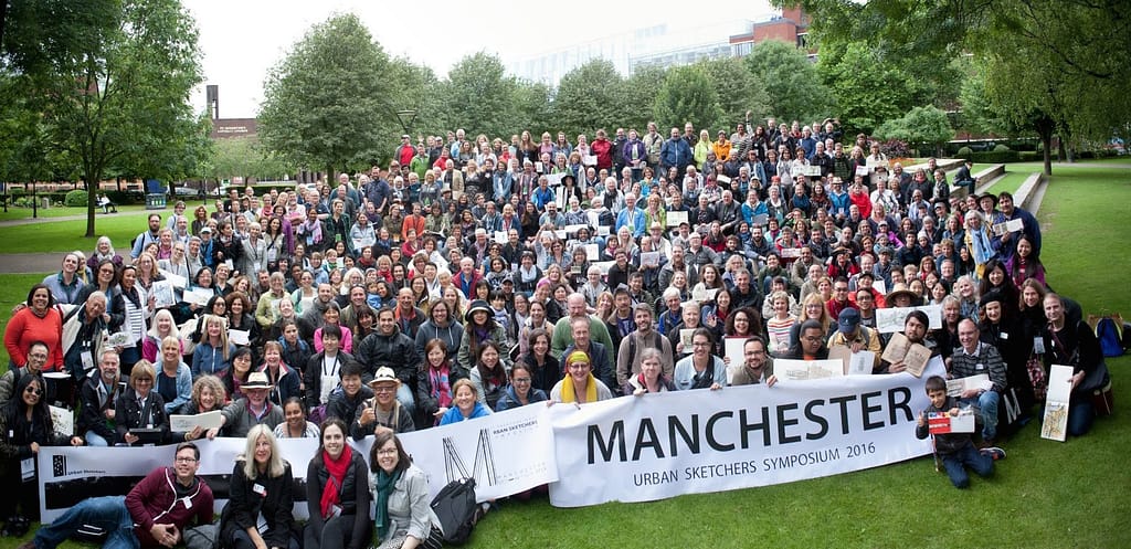 Ich war wohl die einzige Teilnehmerin aus Österreich und habe viele Zeichnerinnen und Zeichner von der ganzen Welt kennengelernt. Hier ist das Gruppenfoto: